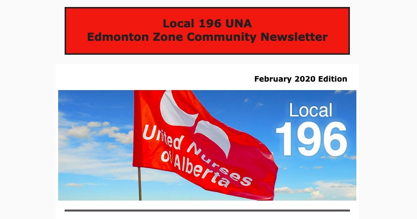 The Local newsletter was sent via MailChimp with updated member contact information from Provincial UNA Office. It was sent to personal email addresses only. If you did not receive our newsletter, please email local196exec@una.ca to be added to our subscribers list. You don’t want to miss out!