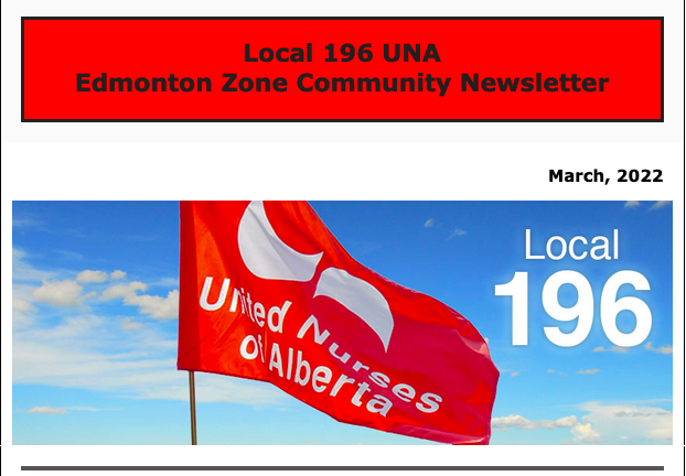 Local 196 UNA e-newsletter: March, 2021