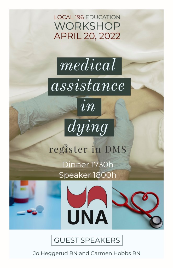 Please join us at the Fantasyland Hotel on April 20th for a workshop on Medical Assistance in Dying