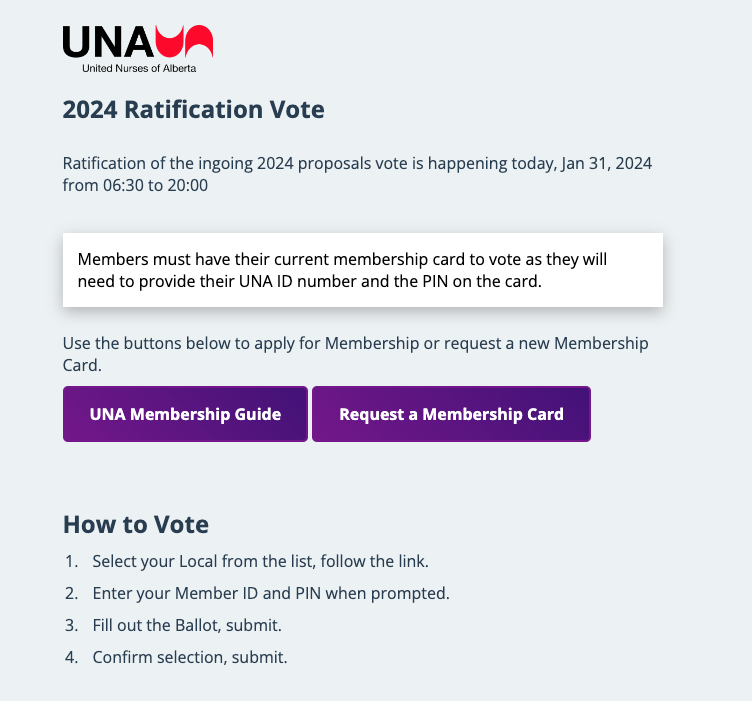 The proposal package is currently unavailable for members to view when they visit the voting website. Provincial UNA is aware, and they are working on a solution.