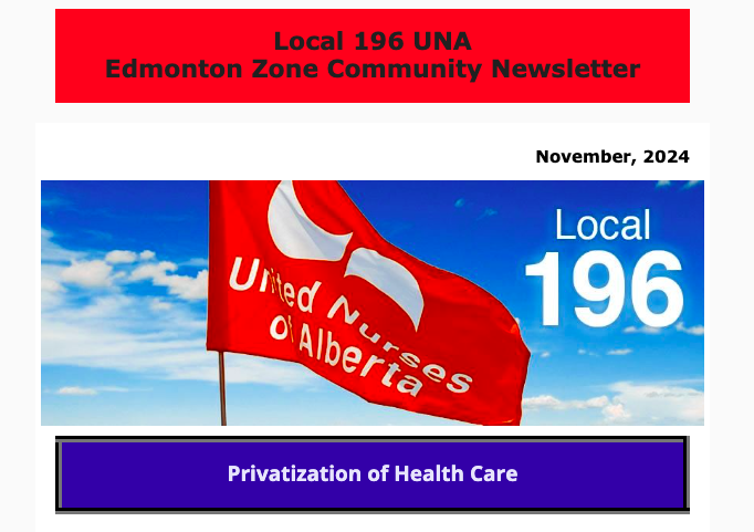 The Local newsletter was sent via MailChimp with updated member contact information from the Provincial UNA Office. It was sent to personal email addresses only. If you did not receive our newsletter, please update your contact information in UNA’s DMS system and email local196exec@una.ca to be added to our subscribers list. You don’t want to miss out!