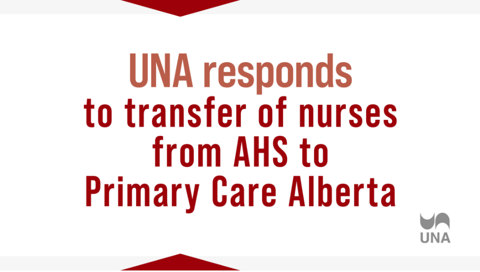 UNA responds to transfer of nurses from AHS to Primary Care Alberta
