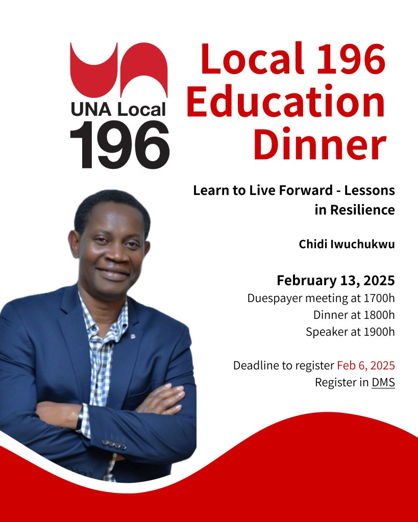 - If you have registered and can no longer attend, please cancel your registration in DMS or email Local196Education@una.ca before the registration deadline.