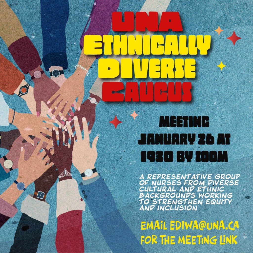 The Ethnically Diverse Caucus represents nurses from racialized, immigrant, and culturally diverse backgrounds, including internationally educated nurses. This caucus is a collaborative and welcoming space, and we strongly encourage everyone to share ideas, bring forward suggestions, and consider becoming more involved in caucus initiatives or possible subcommittee work.