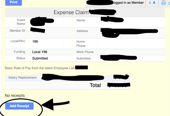 After you press submit, you will be taken to a screen with options to attach the receipt and the completed EI fund application. To complete the application form, click HERE